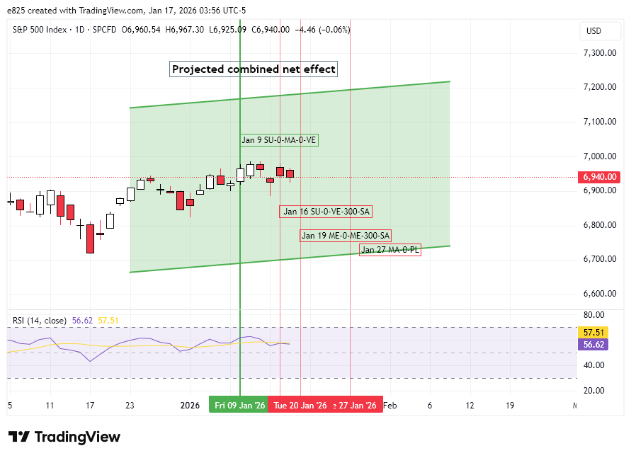 (18 January 2026) Stocks ended the week slightly lower as investors pondered the future of the Fed’s independence after Trump’s latest comments about Fed Chair Jerome Powell. Despite the pullback, the S&P 500 did manage to make new intraday highs although it fell a bit short of the 7000 level.